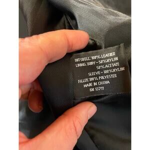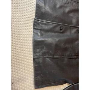Condition: Pre loved but in beautiful condition! Minor signs of wear on the edges (bottom hem and collar). Some of the threads on the buttons are loose. Beautiful leather jacket. All flaws are photographed.