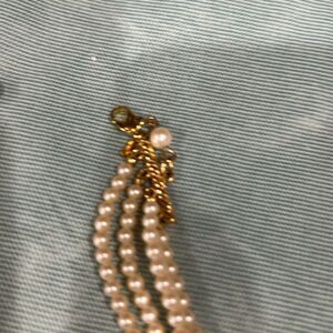 This exquisite Monet necklace showcases a cream hue, crafted with meticulous attention to detail. Its elegant design features multiple rows of shimmering elements, creating a sophisticated and eye-catching piece. Perfect for adding a touch of elegance to any outfit.