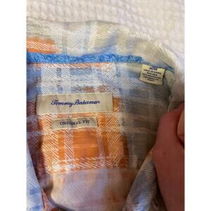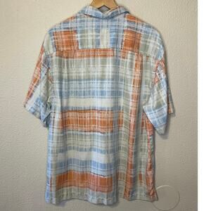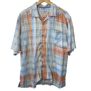Tommy Bahama Silk Blend Original Fit Button Up Orange & Cream Plaid Top Medium
