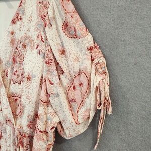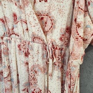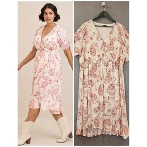 Torrid Swiss Linen Surplice Midi Dress 2X Cream Soft Pink Floral Faux Wrap Lined