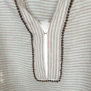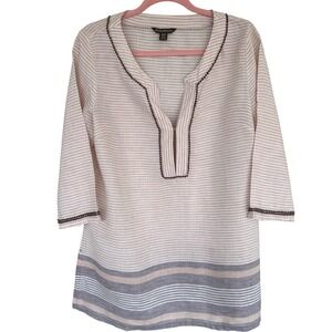 Tommy Bahama Linen Blend Striped V Neck Tunic Top Women's M/M