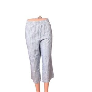 Caffe Marrakesh Pants Women’s Size L Blue White Linen Capri Cropped Boho Beach