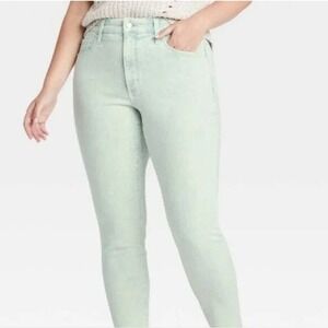 Universal Thread High-Rise Skinny Jeans Mint Green Acid Wash Raw Hem SZ 2X28"