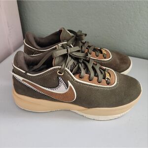 Nike Lebron XX Olive and Tan Low Top Suede Sneakers UK 4.5 EU 37.5