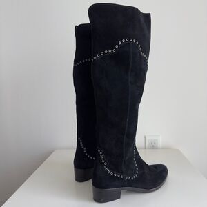FRYE Boots Womens 6.5 Black Over The Knee Suede Leather Ray Grommet Studded