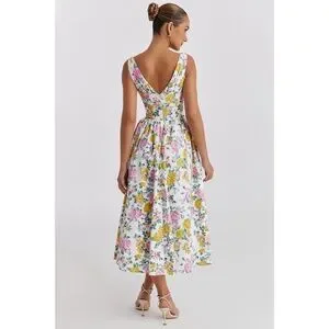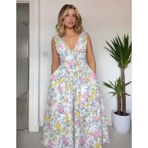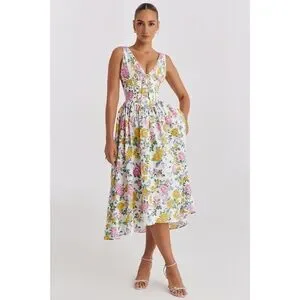 NEW House of CB Emmelina White Vintage Rose Print Dress XS