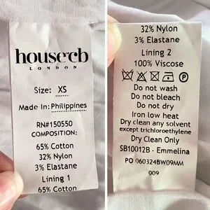 - 65% cotton 32% nylon 3% elastane. Lining 1 65% cotton 32% nylon 3% elastane. Lining 2 100% viscose. Dry clean