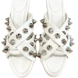 Christian Louboutin's Spika Club sandals feature interlocking vamp straps punctuated with spiked studs. Made in Italy of supple leather, this backless pair is elevated with a block heel that showcases the maison's signature red lacquered sole. Leather upper Open toe Slip-on style Leather lining Leather sole Made in Italy