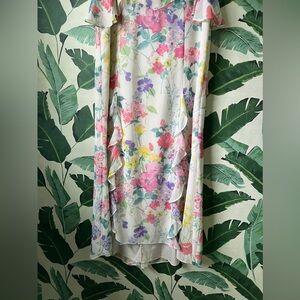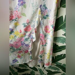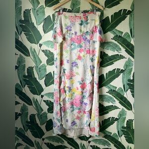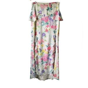 My favorite! The most gorgeous floral maxi skirt. Lined. You will get so many compliments when you wear this piece. Like new! Waist measures 15.5 inches across front. Length measures 48 inches from top to bottom hem.