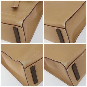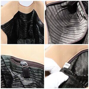 PRADA Tote Bag Leather Beige Silver Auth bs31380