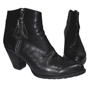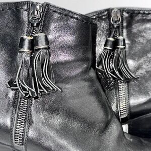 Stuart Weitzman Black Leather Tassel Side Zip Ankle Booties Block Heel Size 7