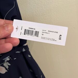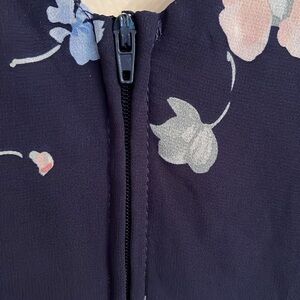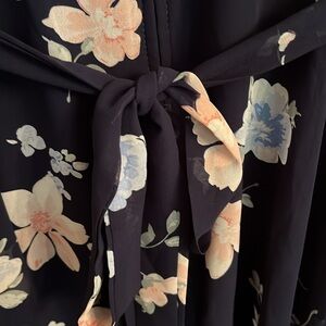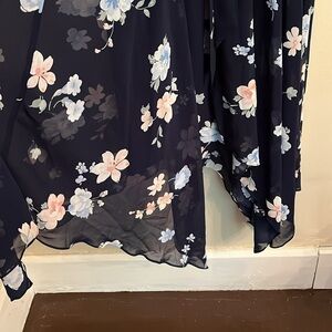 Premier Amour Chiffon Ruffle V Neck Asymmetrical Fully Lined Navy Floral Size 12