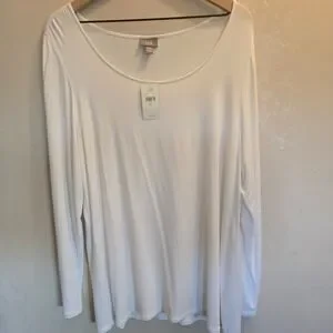 Keywords: J.Jill, Women's, White, Long Sleeve, Top, Tunic, Scoop Neck, Stretch, Comfortable, Versatile, Wardrobe Staple, Layering, Casual, Basic, New with Tags