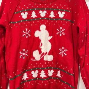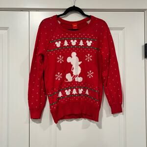 Disney Women's Christmas Mickey Crewneck Sweater in Red Size Medium
