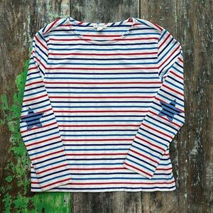 Crewcuts Girls' boatneck T-shirt in star-patch stripe size L (10-11) Long Sleeve
