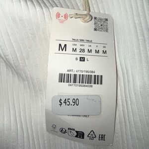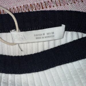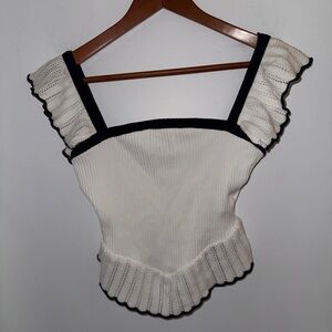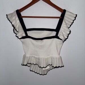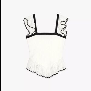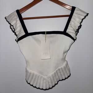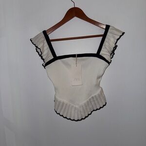 NWT Zara Women’s Contrast Ruffle Top in white with black trim, sz M