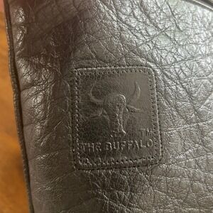 Elegant vintage crossbody bag by Carlos Falchi, adorned with 'The Buffalo' and 'CF' emblems embossed into the textured leather. Its versatile design features a top zip closure and a sleek, adjustable strap for comfortable wear. The bag's interior is fully lined and includes a 'Made in USA' tag, highlighting its quality craftsmanship. A stylish and functional accessory, perfect for everyday use, weekend outings, or casual travel. In good used condition. Bag is approximately 8 inches wide, 7 inches tall and strap is approximately 50 inches long. Strap was tied at end so needs to be straightened out.