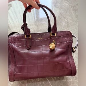 Alexander McQueen Burgundy Croc Embossed Leather Bag