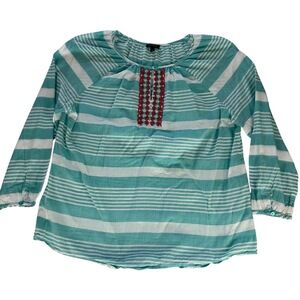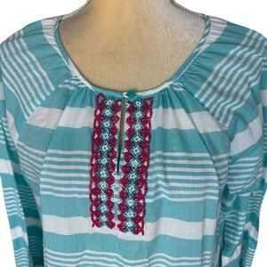 Tags: Talbots, Blouse, Tunic, Stripe, Cotton, Beaded, Embroidered, Western, Preppy, Large Summer Casual Comfortable
