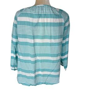 Talbots Blue White Stripe Beaded Keyhole 3/4 Sleeve Tunic Blouse Large