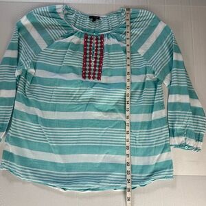 Talbots Blue White Stripe Beaded Keyhole Detail Round Neck Tunic Blouse Large