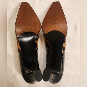 New Stuart Weitzman Leopard Print & Black Croc-Embossed Women's Heels size 8