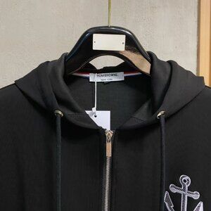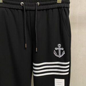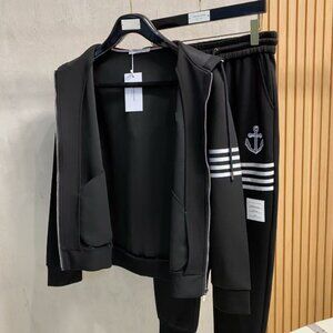 This Thom Browne tracksuit comes in classic black, featuring iconic nautical anchor embroidery and the brand’s signature 4-bar stripes on sleeves and legs.