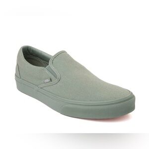 NEW VANS MONO SAGE GREEN CANVAS SLIP ON SNEAKERS SZ M 7.5 W 9