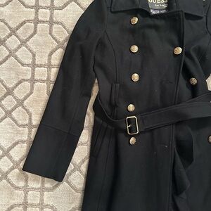 GUESS Black Trench Coat with Gold Buttons