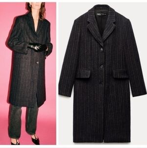 New Without Tag Zara Manteco Wool Striped Coat ZW Collection