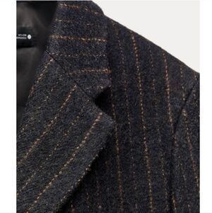 New Zara Manteco Wool Striped Coat ZW Collection 8912/760 Size XL
