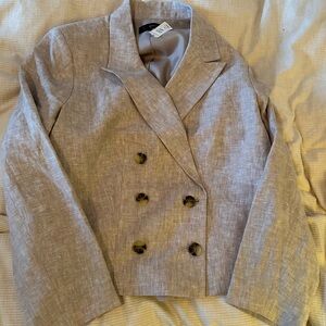 ☀️3/$25 NWT Talbots cropped linen Tan Double-Breasted Blazer 18 jacket