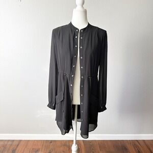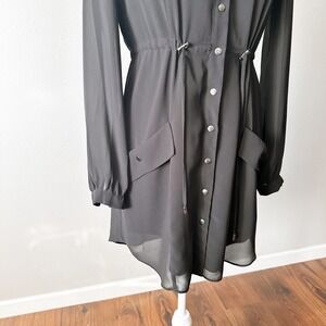 Haute Hippie Black Silver Button Front Drawstring Waist Tunic Dress Size Small