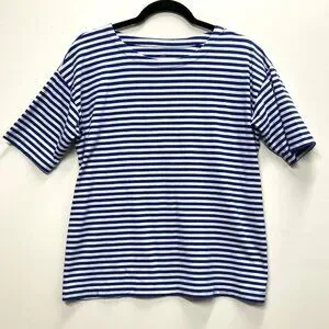 J Jill Blue & White Casual Luxe Supima Striped T-Shirt
