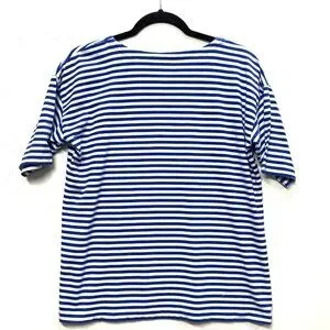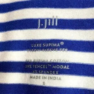 J Jill Striped T-Shirt, Size Small, Luxe Supima Elbow Short Sleeve, Blue & White