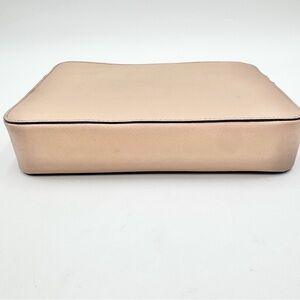 Good used condition. Preloved. Gold tone hardware. Top zip closure. Interior has 2 open pockets and has signs of wear. Photos are part of description.