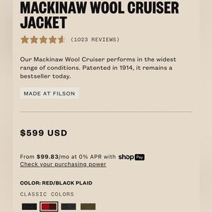 Filson Mackinaw Wool Cruiser in Red and Black Plaid (2024)