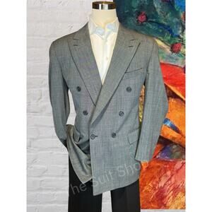 Vintage Burberry Mens 46L Gray Nailhead Double Breasted Designer Power Blazer
