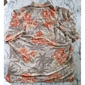 Caribbean Joe Shirt Men Large 100% Silk Hawaiian – Orange Floral Aloha Camp