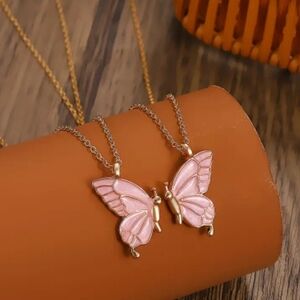Set of 2 pink and gold necklaces for friends. Both are a butterfly by themselves and also form a butterfly when put together