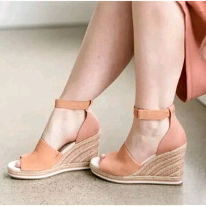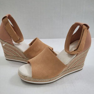 Toms Marisol Suede/Canvas Espadrille Wedge Sandals Sandy Beige Size 9 - NWOT