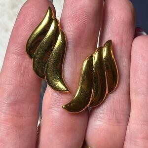 Vintage Designer Luxe Gold Wing Earrings by Napier