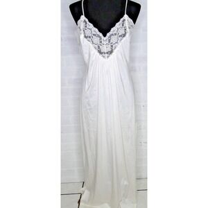 Vintage Lorraine Maxi Sleeveless Nightgown Satin Off White Lace Sz M Women's USA