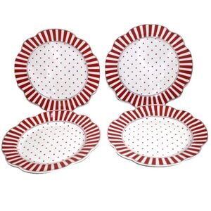 4 Grace Teaware Josephine 9.25” Porcelain Red White Striped Plates New Set 4