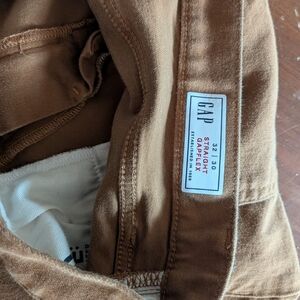 Classic GAP City Jeans in a versatile palomino brown color. These have a straight fit with a clean, modern look that works well for casual or business-casual wear. Soft, comfortable cotton with a structured feel — easy to dress up or down.