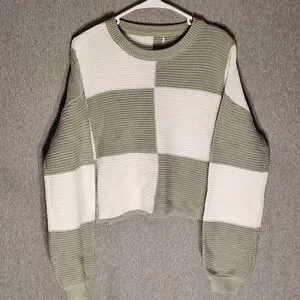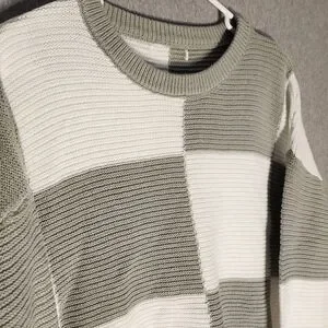 Stylish green and white checkered sweater. Perfect for casual wear. Tags have all been cut out. Unknown brand, I believe it is a medium. Like new condition.