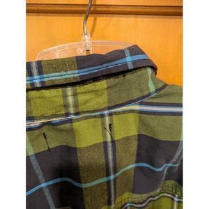 Ocean Pacific Men's Green Blue Plaid L/S Dress Shirt Size Medium
