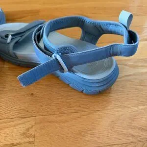 Like new condition. Color is vintage Blue Haze, which is a blueish gray color. A few creases here and there. Little to no signs of wear. Clean. Women's Size 10. The small stickers with sizing information came off. I taped them back on the interior of the straps. One sticker is torn and part is missing.