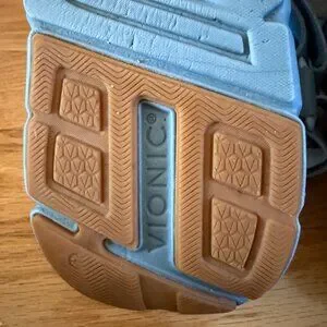 VIONIC Women's Walk Max Wanderer Sandals Leather upper.. Polyurethane lining and ethylene vinyl acetate insole.. Hook-and-loop strap closure in a round, open toe silhouette.. Built-in VIO MOTION Technology footbed featuring contoured arch support, with shock-absorbing cushioning, deep heel cup to provide stability, and forefoot flexibility.. Durable cushioned synthetic rubber outsole designed to withstand everyday wear.