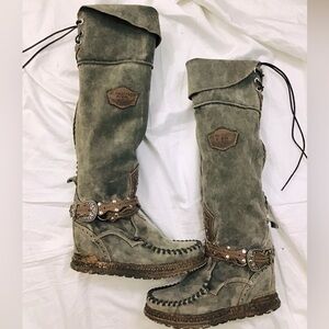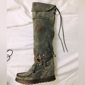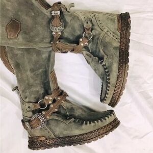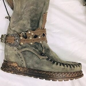 EL VAQUERO LEATHER WEDGE MOCASSIN BOOTS